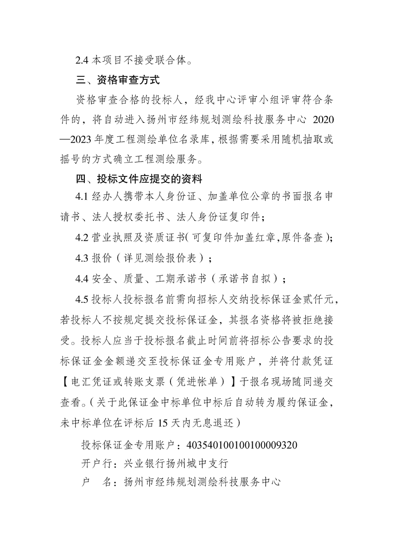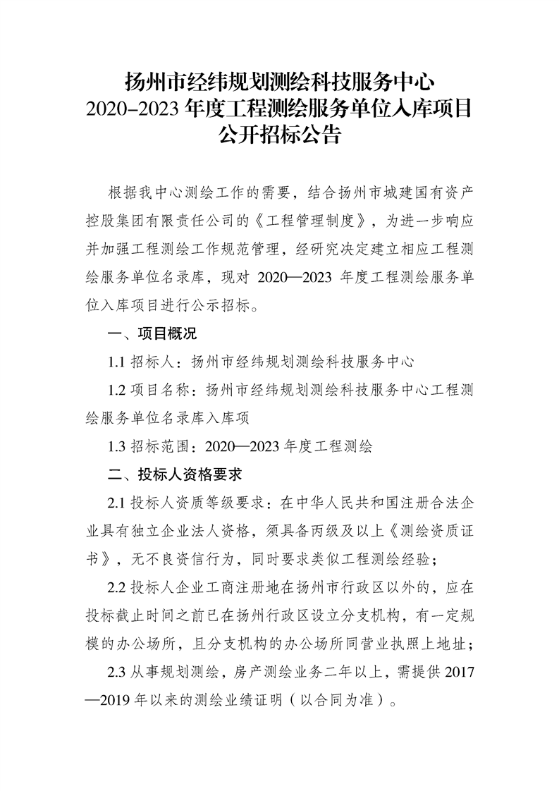 揚州市經(jīng)緯規(guī)劃測繪科技服務中心2020-2023年度工程測繪服務單位入庫項目公開招標公告