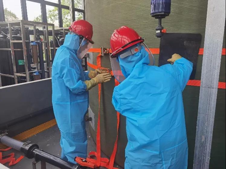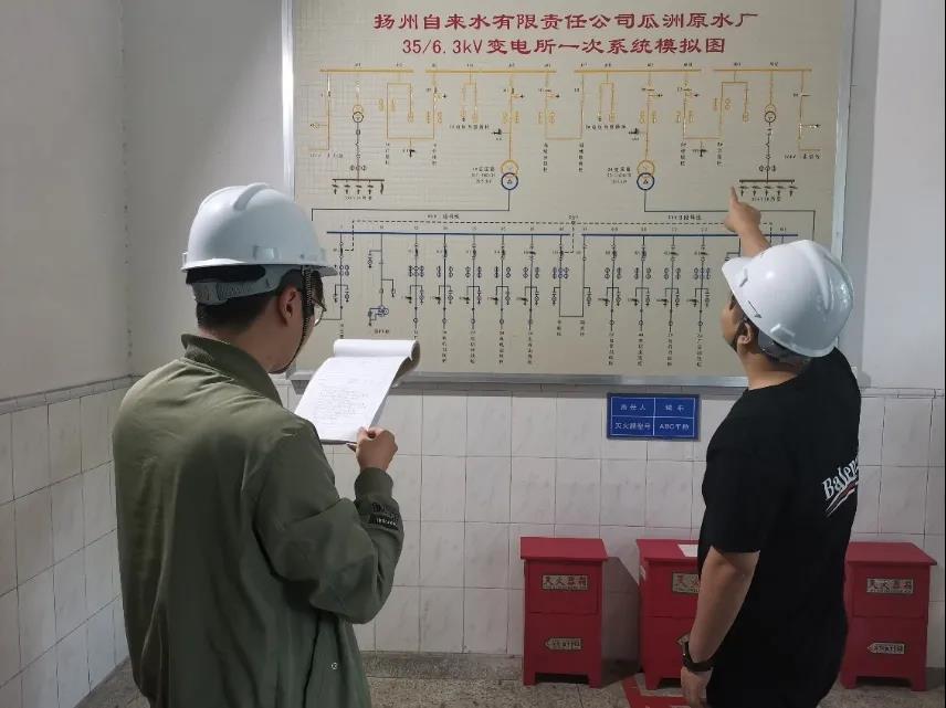 在結合理論學習之后,加強生產人員應急處置和實操能力的演練。在演練環(huán)節(jié),模擬瓜洲變電所在生產運行中35KV古洲線突發(fā)失電,值班人員啟動應急處置程序。班組人員按應急預案步驟切除相關高壓低壓開關設備,再經過一系列倒閘操作,迅速切換到到備用線路上,恢復了生產用電,并做好巡查匯報工作。演練采取實操方式進行,整個倒閘操作過程步驟有序,嚴格按照突發(fā)事故處理流程進行演練,嚴格使用規(guī)范的操作術語,對所涉及到的驗電、分合開關、檢查設備等操作符合安規(guī)要求,達到了預期效果。為強化?;饭芾恚嵘龁T工應急處置能力。近日,頭橋水廠針對次氯酸鈉制備和管理的安全操作規(guī)程要求,組織了次氯酸鈉儲罐和投加管道泄漏兩個科目的應急處置演練,通過提升應急處置能力,不斷強化?;返墓芾砗褪褂?。