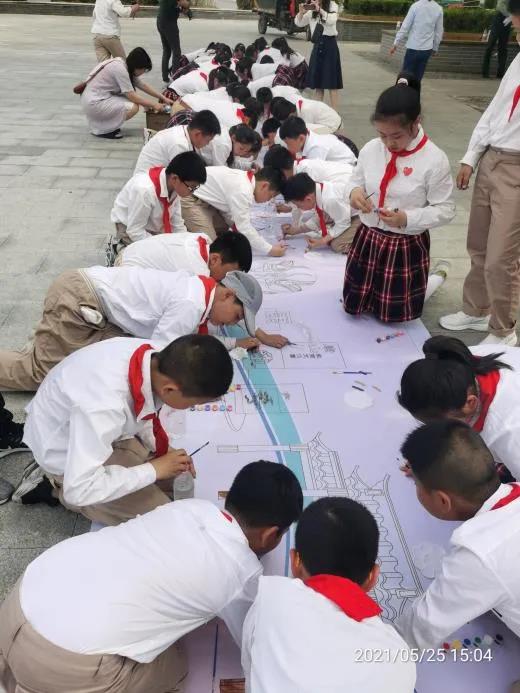 在雄壯的國歌中,活動徐徐拉開帷幕。揚州軍分區(qū)護旗隊,高舉國旗正步入場,并將國旗傳遞給少先隊員代表。隨后廣場響起清亮的少年先鋒隊隊歌:“我們是共產主義接班人,繼承革命先烈的光榮傳統(tǒng)......”,錚錚歌詞、響徹全場,回憶青春、心潮澎湃。最后,資產公司、廣陵消防救援站、團工委、東關街道婦聯等單位代表共同在噴繪上進行沙畫作業(yè),表達心中對建黨百年的衷心祝愿,少先隊員們也用手中彩筆描繪東關錦繡風光。