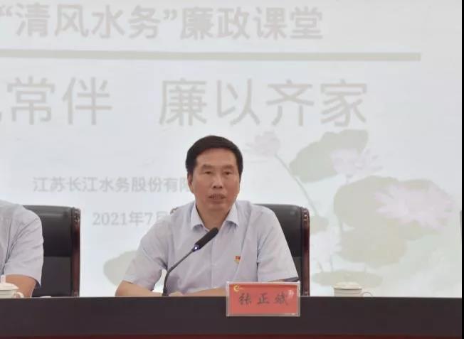 城控集團黨委委員、長江水務黨委書記、董事長張正斌發(fā)表講話,他分別從家和萬事興、量變引起質變、小心成為“獵物”這三個方面給在場所有人員再次敲響廉政警鐘。他表示,長江水務多年來各項工作取得的長足發(fā)展,飽含全體員工的辛勤付出和努力,更離不開職工家屬的關心與支持。家風是黨風的重要組成部分,家風連著黨風,家廉才能政廉,全體黨員干部要從百年黨史中傳承優(yōu)良家風,把修身齊家落到實處,要和家人同心協(xié)力,守好家庭防線,真正把家風建設內化于心、外化于行,做到修身律己、廉潔齊家,為扎實推進公司全面從嚴治黨向縱深發(fā)展,譜寫公司高質量發(fā)展新篇章提供堅強保障。