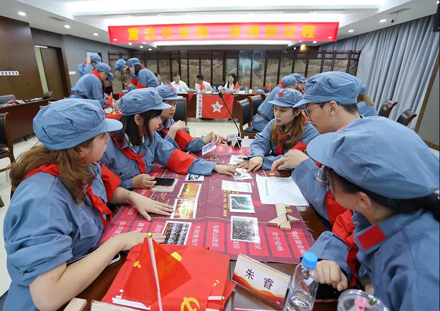 課程以講授、影片片段觀摩、模擬推演、小組討論、互動演示等形式,從歷史時間、戰(zhàn)役模擬、精神提煉、思想踐行等方面展開學(xué)習(xí)。活動現(xiàn)場,每位學(xué)員都深入其中,仿佛置身于那個戰(zhàn)火紛飛的年代,真實演繹了“面臨敵軍圍追堵截”“經(jīng)歷湘江血戰(zhàn)”“召開遵義會議”“上演飛奪瀘定橋”等重要事件,進一步領(lǐng)悟了革命先輩堅定信仰、不怕犧牲,勇往直前、堅忍不拔,眾志成城、百折不撓的偉大長征精神。