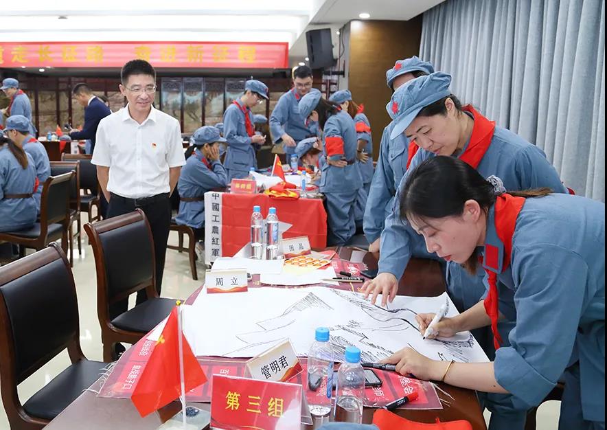 本次沙盤模擬演練活動,通過沉浸式的學(xué)習(xí)研討和考驗協(xié)作能力的趣味任務(wù),用“不一樣的講黨史”讓大家深入了解了長征的歷史背景,并能夠親身參與、切實體驗長征路上的艱難險阻,從而真正感受到革命先輩創(chuàng)業(yè)之艱難,引領(lǐng)大家把敬仰和感動轉(zhuǎn)化為奮進有為、干事創(chuàng)業(yè)的精神動力,以更加飽滿的熱情、昂揚的斗志、務(wù)實的作風(fēng),立足本職,扎實工作,奮力走好新時代的長征路。