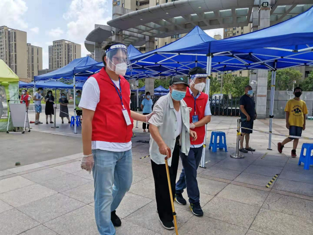 核酸檢測(cè)現(xiàn)場(chǎng),黨員志愿者們堅(jiān)持讓黨旗飄起來(lái)、將身份亮出來(lái)、把戰(zhàn)斗堡壘和先鋒模范作用充分發(fā)揮出來(lái),他們有條不紊地引導(dǎo)群眾有序排隊(duì),一遍遍地提醒大家保持安全距離,盡心盡力為居民答疑解惑、安撫情緒,幫助老年人解決行動(dòng)不便和健康碼查驗(yàn)等問(wèn)題,堅(jiān)持做好支援工作的每一個(gè)細(xì)節(jié),確保了轄區(qū)內(nèi)近6000名群眾的核酸檢測(cè)工作有序、有效進(jìn)行。