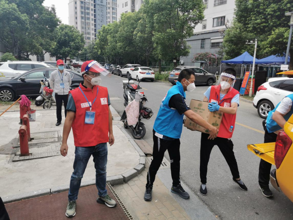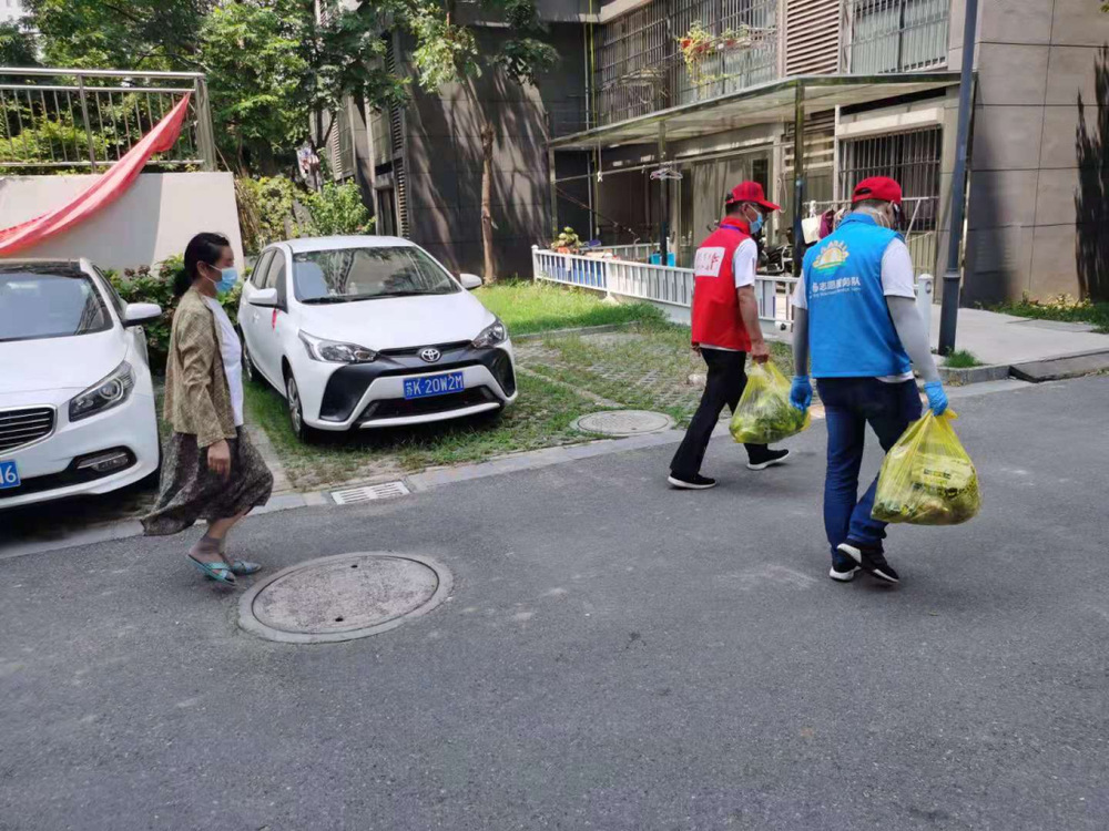 由于疫情的管控,許多路口設卡,導致居民在手機APP上采購的蔬菜及生活必須品進不來。志愿者們第一時間從內(nèi)聯(lián)系在外輪休的志愿者去卡口,在全方面消毒的情況下幫居民領取生活必需品?!耙咔橄?,你們也要一定要保護好自己啊?!本用癜l(fā)自肺腑的關心也讓志愿隊成員們心頭涌上一陣暖意。