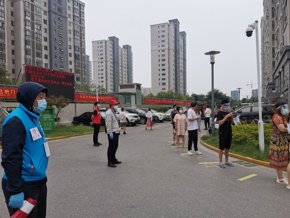 “請大家排好隊,保持一米以上安全距離,不要造成人員聚集,請?zhí)崆皽蕚浜媚愕纳矸葑C……”志愿者不斷提醒居民注意。在翠月花園核酸采集點,志愿者們穿梭在排隊人群中,邊安撫居民緊張情緒,邊引導居民即測即走?!半m然天氣很悶熱,工作量很大,但是我們有信心能保質保量完成全小區(qū)核酸檢測任務。”他們不顧喉嚨嘶啞,依舊熱情且耐心地回答居民的問題,引導現(xiàn)場秩序。11日下午,雨淅淅瀝瀝下個不停。雖然避雨棚近在咫尺,但志愿者們面對風雨寸步不離崗位,他們笑著說道“這點風雨算啥呀?”一周來,志愿者們協(xié)助社區(qū)開展了4次核酸檢測,共檢測居民約12000人次。