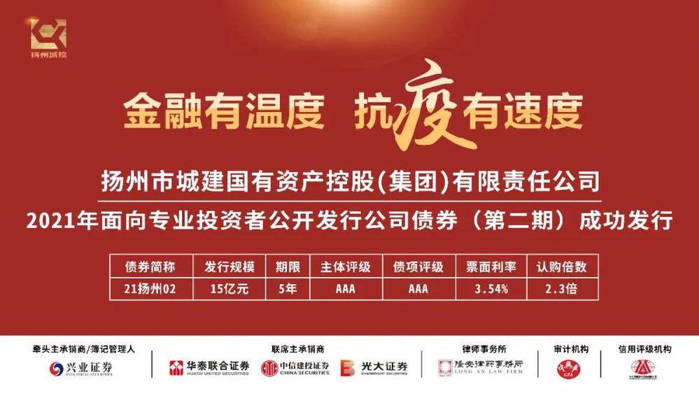 近日,城控集團2021年第二期15億元公司債成功簿記發(fā)行,期限5年,票面利率3.54%,創(chuàng)集團2017年以來同期限債券發(fā)行利率新低!本期債券募集資金將用于集團民生保供、日常經(jīng)營等。