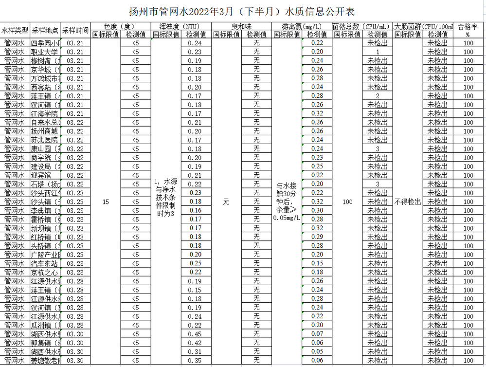 江蘇長江水務(wù)股份有限公司出廠水水質(zhì)報(bào)告 ( 2022 年 03月 )