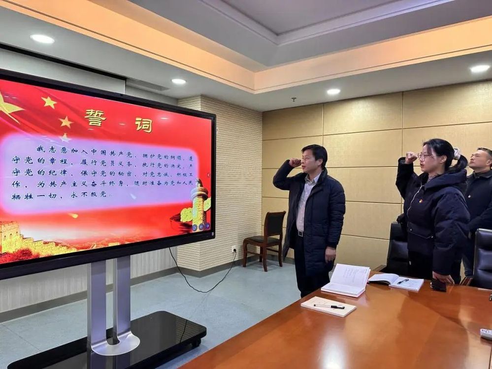 會(huì)議還討論了預(yù)備黨員轉(zhuǎn)正事宜。新黨員在支部書(shū)記的帶領(lǐng)下,面對(duì)黨旗,進(jìn)行入黨宣誓,全體黨員重溫了入黨誓詞。