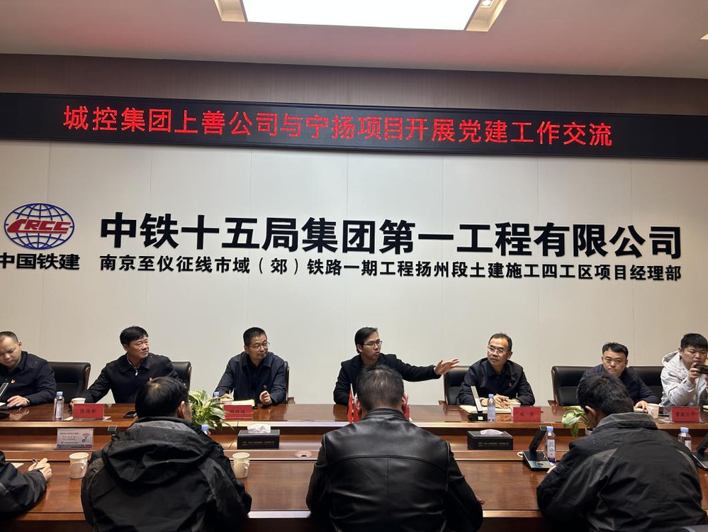 為進一步形成雙向促進、共同提高的黨建新格局,不斷提升黨的建設(shè)質(zhì)量和發(fā)展水平,推動黨組織之間互相交流、共同提升。3月27日下午,上善公司黨支部副書記、總經(jīng)理付元寧帶領(lǐng)萬福快速路東延項目團隊,赴中鐵十五局寧揚城際鐵路項目部考察學習。