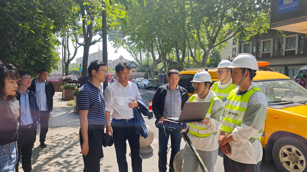 4月25日上午,江蘇省城市生命線安全工程建設(shè)推進(jìn)工作領(lǐng)導(dǎo)小組領(lǐng)導(dǎo)在鹽阜路雷達(dá)空洞探測現(xiàn)場,實(shí)地調(diào)研揚(yáng)州市政管網(wǎng)公司雷達(dá)空洞探測工作開展情況,并給予技術(shù)指導(dǎo)。