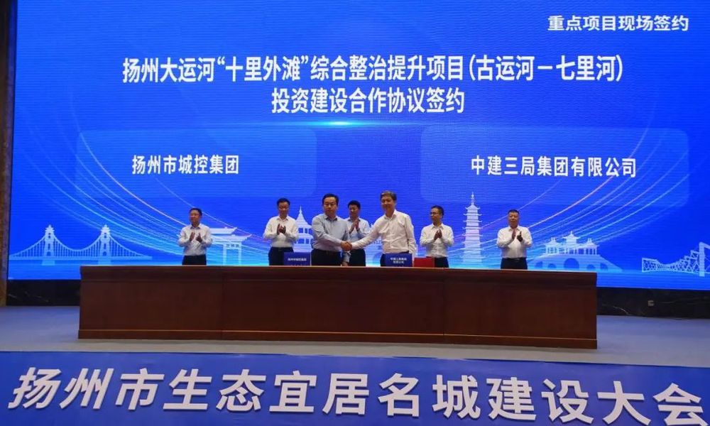 會(huì)上,11個(gè)項(xiàng)目舉行現(xiàn)場簽約。其中,城控集團(tuán)與中建三局圍繞提升城市服務(wù)功能,簽訂《揚(yáng)州大運(yùn)河“十里外灘”綜合整治提升項(xiàng)目(古運(yùn)河-七里河)投資建設(shè)合作協(xié)議》,與江蘇邗建集團(tuán)圍繞基礎(chǔ)設(shè)施改善,簽訂六圩污水處理廠擴(kuò)建項(xiàng)目。此次簽約,各方將本著優(yōu)勢互補(bǔ)、互惠互利、協(xié)同發(fā)展原則,共同推動(dòng)揚(yáng)州大運(yùn)河文旅資源開發(fā)及城市基礎(chǔ)設(shè)施建設(shè),為揚(yáng)州高質(zhì)量發(fā)展貢獻(xiàn)新的更大力量。