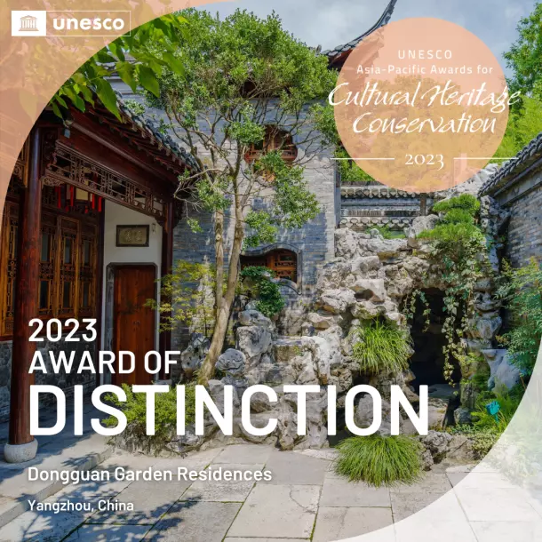 東關(guān)歷史文化街區(qū)位于揚(yáng)州明清古城東北隅,東起古運(yùn)河,西至國(guó)慶路,南臨文昌中路,北達(dá)鹽阜東路,面積3.4平方公里,是城內(nèi)迄今保存最為完整、規(guī)模最大的歷史文化街區(qū)。街區(qū)沿線歷史遺存薈萃,其中個(gè)園、汪氏小苑、唐宋東門遺址、逸圃為國(guó)家級(jí)文物保護(hù)單位,曹起溍故居、壺園、劉文淇故居、丁姓鹽商住宅等為市級(jí)文物保護(hù)單位。2023年末,聯(lián)合國(guó)官網(wǎng)發(fā)布了《2023年亞太文化遺產(chǎn)保護(hù)獎(jiǎng)獲獎(jiǎng)?wù)呙麊巍??!皷|關(guān)歷史文化街區(qū)園宅保護(hù)與傳承復(fù)興項(xiàng)目”從亞太地區(qū)8個(gè)國(guó)家48個(gè)參賽項(xiàng)目中脫穎而出,獲評(píng)聯(lián)合國(guó)教科文組“2023年度亞太文化遺產(chǎn)保護(hù)獎(jiǎng)杰出獎(jiǎng)”。是全國(guó)唯一獲得“杰出獎(jiǎng)”的文保項(xiàng)目。聯(lián)合國(guó)教科文組織在項(xiàng)目評(píng)審語(yǔ)中寫到“東關(guān)歷史文化街區(qū)是傳統(tǒng)文化與當(dāng)代景觀設(shè)計(jì)的完美結(jié)合,為亞太地區(qū)古典園林保護(hù)及活化利用提供了重要參考”。
