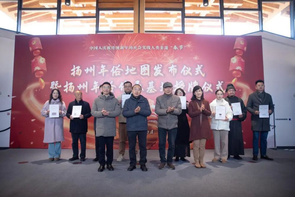 2025年1月10日上午,由揚(yáng)州年俗保護(hù)單位揚(yáng)州文藝家志愿者協(xié)會(huì)精心策劃的揚(yáng)州年俗地圖發(fā)布儀式暨揚(yáng)州年俗傳承基地授牌活動(dòng)在小秦淮劇場(chǎng)熱烈開(kāi)啟,為即將到來(lái)的新春佳節(jié)奏響了激昂序曲,也為揚(yáng)州非物質(zhì)文化遺產(chǎn)傳承與發(fā)展注入了新的活力。揚(yáng)州市文聯(lián)黨組書(shū)記、文聯(lián)主席黃振宇、揚(yáng)州城控集團(tuán)黨委副書(shū)記徐飛、揚(yáng)州市委宣傳部原常務(wù)副部長(zhǎng)李廣春、著名文化學(xué)者顧風(fēng)等嘉賓出席并授牌。