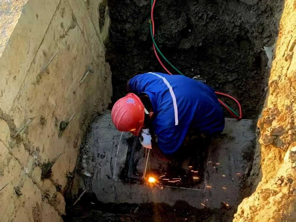 六圩污水處理廠擴建工程圓滿完成三期出水新舊管道碰接