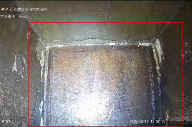 面對箱涵內淤泥沉積、水體渾濁、空間狹窄等復雜工況,傳統(tǒng)檢測方案需提前進行現(xiàn)場預處理,不僅耗時久、成本高,檢測精度也難以保證。為此,城安公司采用機器人探測方案,以科技手段突破檢測瓶頸。