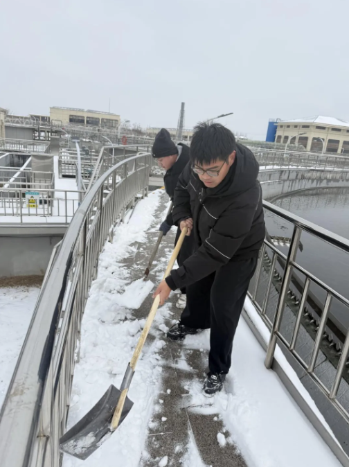 潔源環(huán)境公司湯汪、六圩、北山三座污水處理廠遭遇積雪結(jié)冰難題,給污水處理設(shè)施24小時不間斷運(yùn)行、民生保供及達(dá)標(biāo)排放帶來嚴(yán)峻考驗(yàn)。面對極端天氣,各廠區(qū)以雪為令、主動應(yīng)戰(zhàn),以責(zé)任與堅(jiān)守筑起城市水環(huán)境安全屏障。