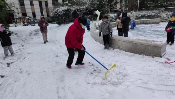 在京杭融園,不少居民們帶著工具自發(fā)加入掃雪隊(duì)伍。放假在家的孩子們在家長的陪同下,一起清理兒童樂園周邊的積雪。物業(yè)管家與業(yè)主們合力清掃小區(qū)干道,防止結(jié)冰滑倒,共同維護(hù)小區(qū)的整潔與安全。