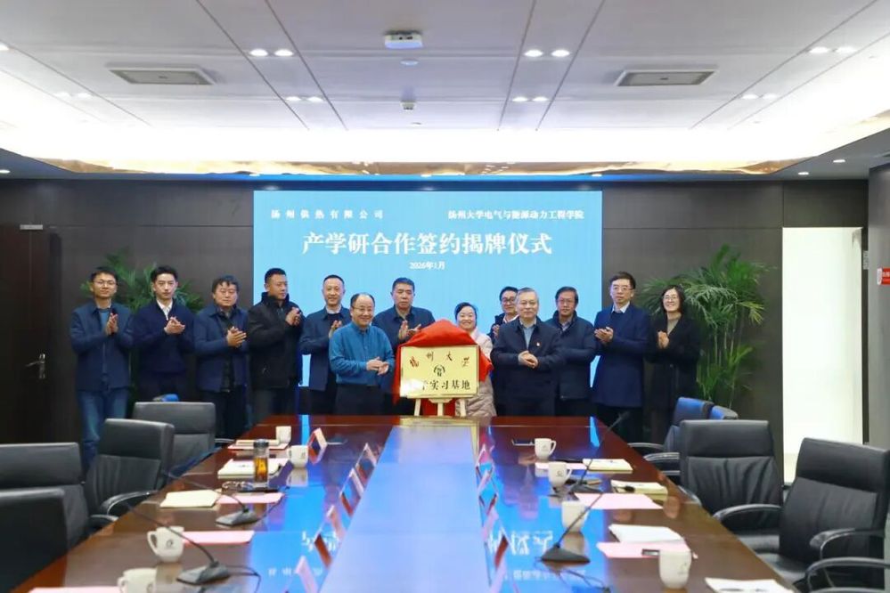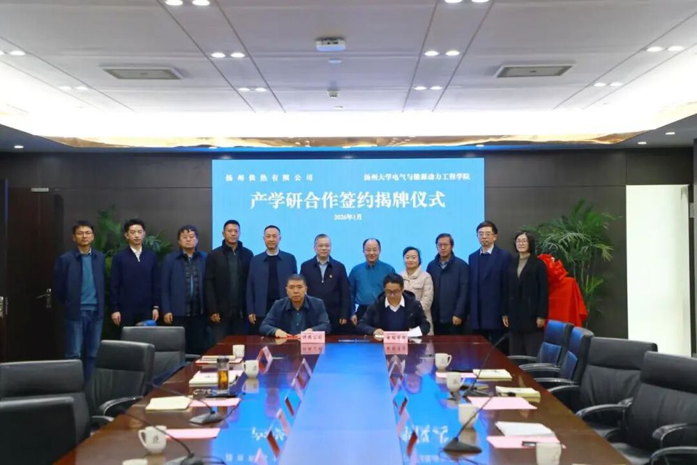 1月28日下午,供熱公司與揚州大學電氣與能源動力工程學院舉行產(chǎn)學研合作簽約揭牌儀式。揚州大學電氣與能源動力工程學院院長楊華、黨委副書記周敏、副院長李生權,城控集團副總經(jīng)理、能源集團董事長孔德存,供熱公司主要負責人及相關人員出席儀式。