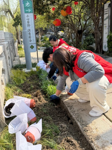 活動現場,志愿服務隊牽頭,街區(qū)運營團隊、物業(yè)工作人員分工協(xié)作、配合默契,在街區(qū)沿河步道等區(qū)域修剪雜枝、翻松土壤、清除雜草,針對部分空置區(qū)域,適量補植花灌木與時令花卉,大家仔細做好挖坑、扶苗、培土、澆水等工序,確保“栽一片、活一片、美一片”。此次志愿行動也帶動了周邊商戶和市民主動參與,大家主動搭把手、出分力,在點滴行動中進一步增強了愛綠、護綠、共建美麗小秦淮的意識。